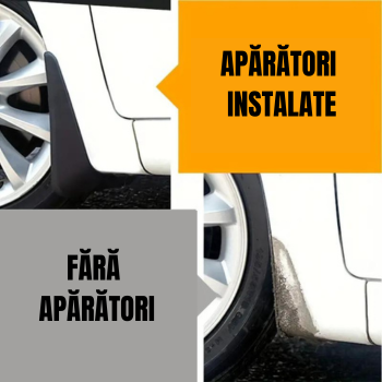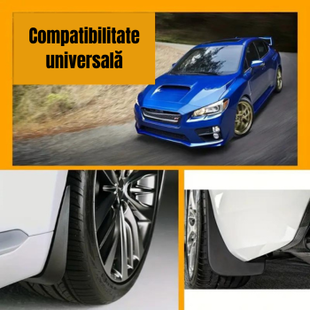 Apărătorile universale din cauciuc oferă o protecție eficientă împotriva noroiului, pietricelelor și altor reziduuri care ar putea sări de pe roți pe caroserie. Acest lucru previne deteriorarea vopselei și zgârieturile, menținând mașina într-o stare estetică impecabilă și prelungind durata de viață a caroseriei.
