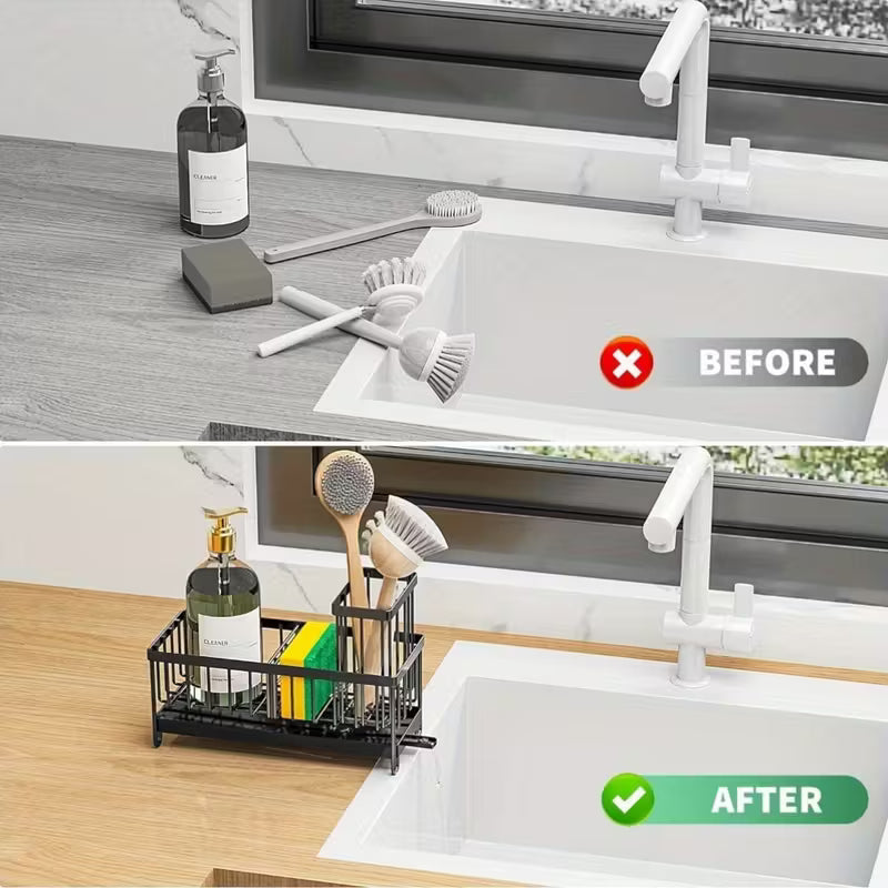 Ține bureții, lavetele și detergentul la îndemână, fără să facă dezordine pe chiuvetă.