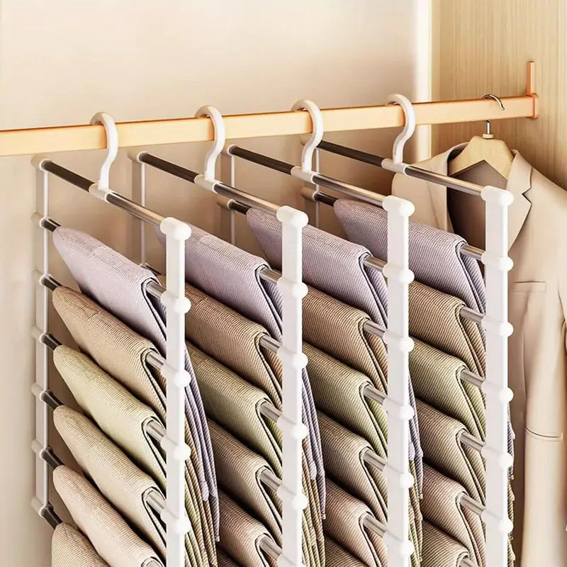 Set 2 Organizatoare Tip Scara Pantaloni cu 6 Tije din Oțel Inoxidabil